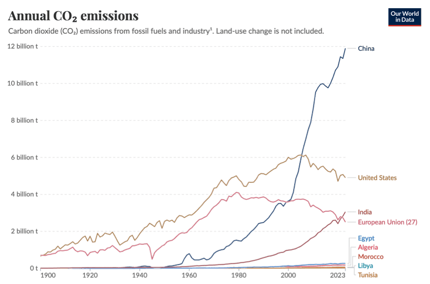 - Our World in Data (2024). Annual CO₂ emissions. https://ourworldindata.org/co2-and-greenhouse-gas-emissions